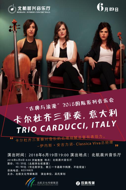 卡尔杜齐三重奏2016年成立于米兰,由三位意大利演奏家组成,成员包括:小提琴家杰尔马纳•珀库、大提琴家玛蒂尔达•科力亚尔和钢琴家莎拉•科斯塔。